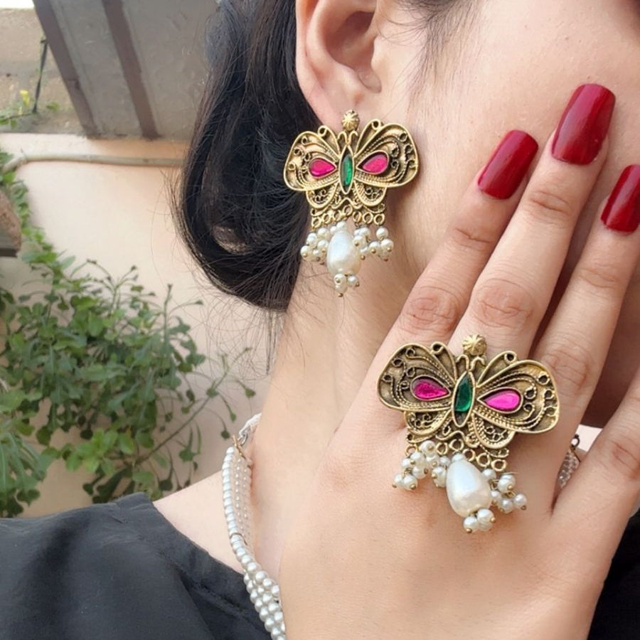 Elevate your jewelry collection with this exquisite Butterfly Choker Set, a sophisticated piece that combines delicate artistry with timeless elegance. Featuring an intricate butterfly motif, this choker is designed to frame the neckline beautifully while making a refined statement. The set includes complementary pieces that work harmoniously together, perfect for both everyday wear and special occasions. Crafted with attention to detail, this choker brings a touch of nature-inspired grace to any ensemble. Ideal for those who appreciate jewelry that balances subtlety with striking visual appeal.