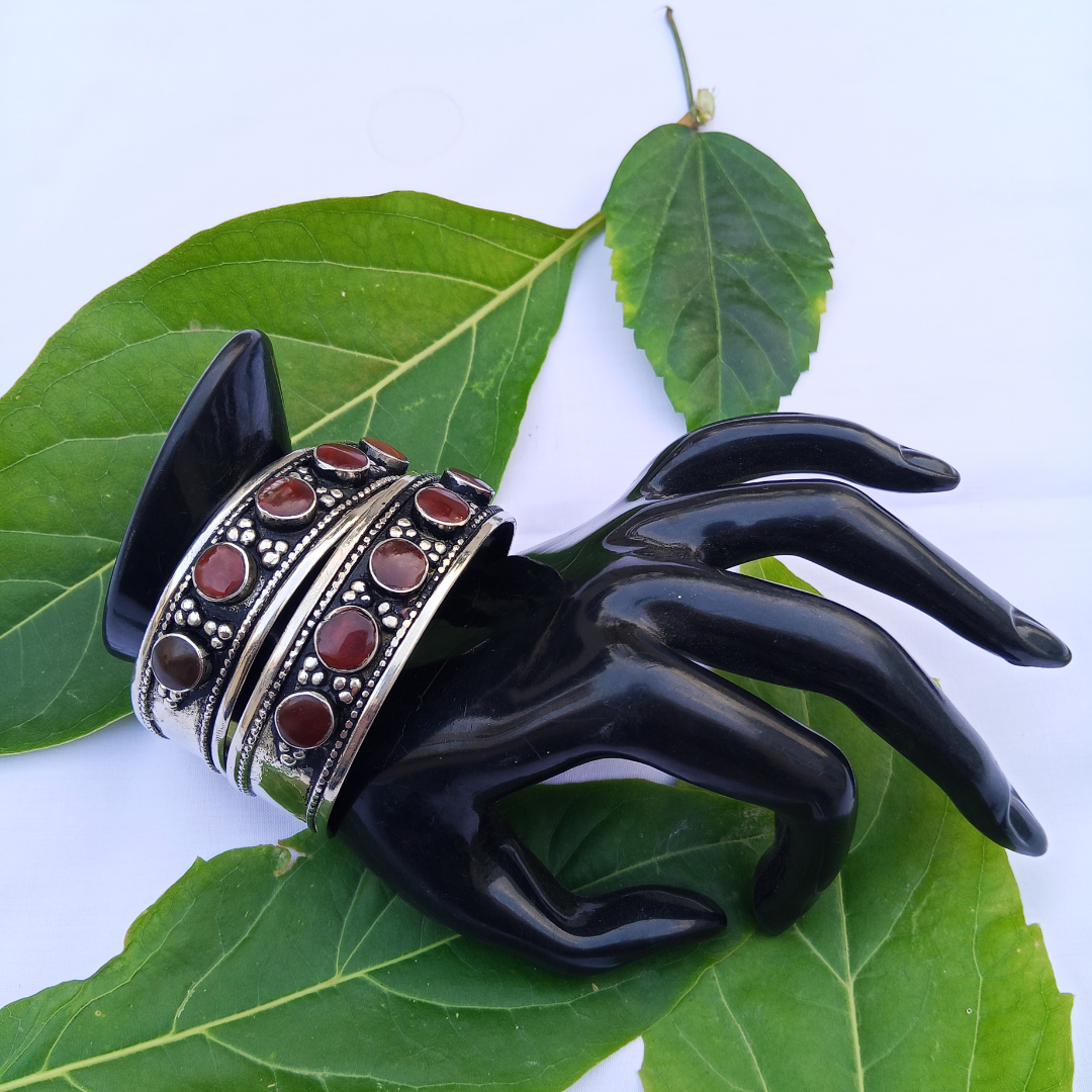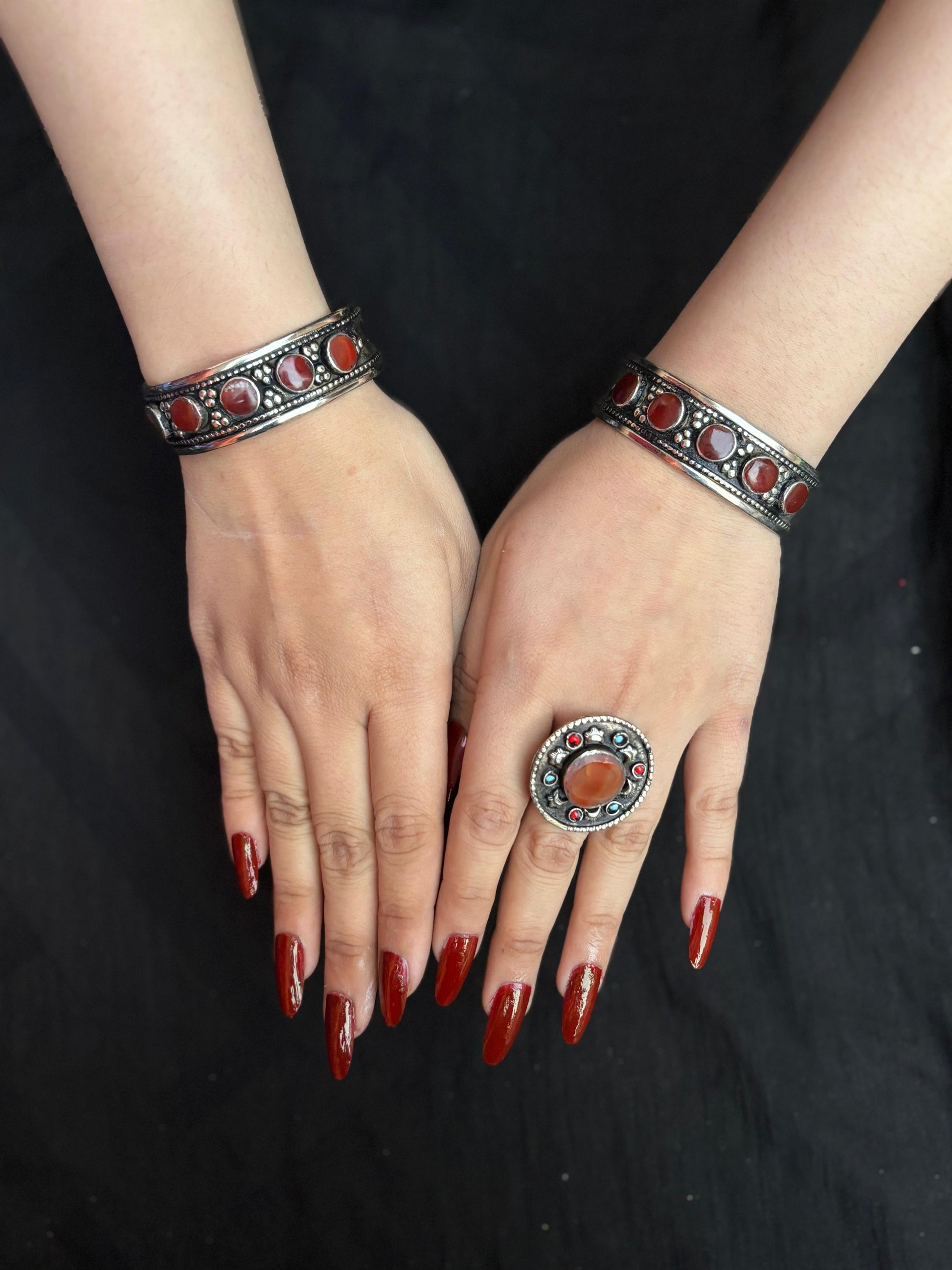 The Noor e Aqeeq Kara pair is crafted with precision to offer both elegance and spiritual significance. Featuring genuine Aqeeq stones known for their calming and protective properties, this pair complements formal and casual attire alike. Expertly designed, it enhances your personal style while serving as a meaningful symbol of faith and tradition. Ideal for those seeking both quality and cultural depth in their accessories.