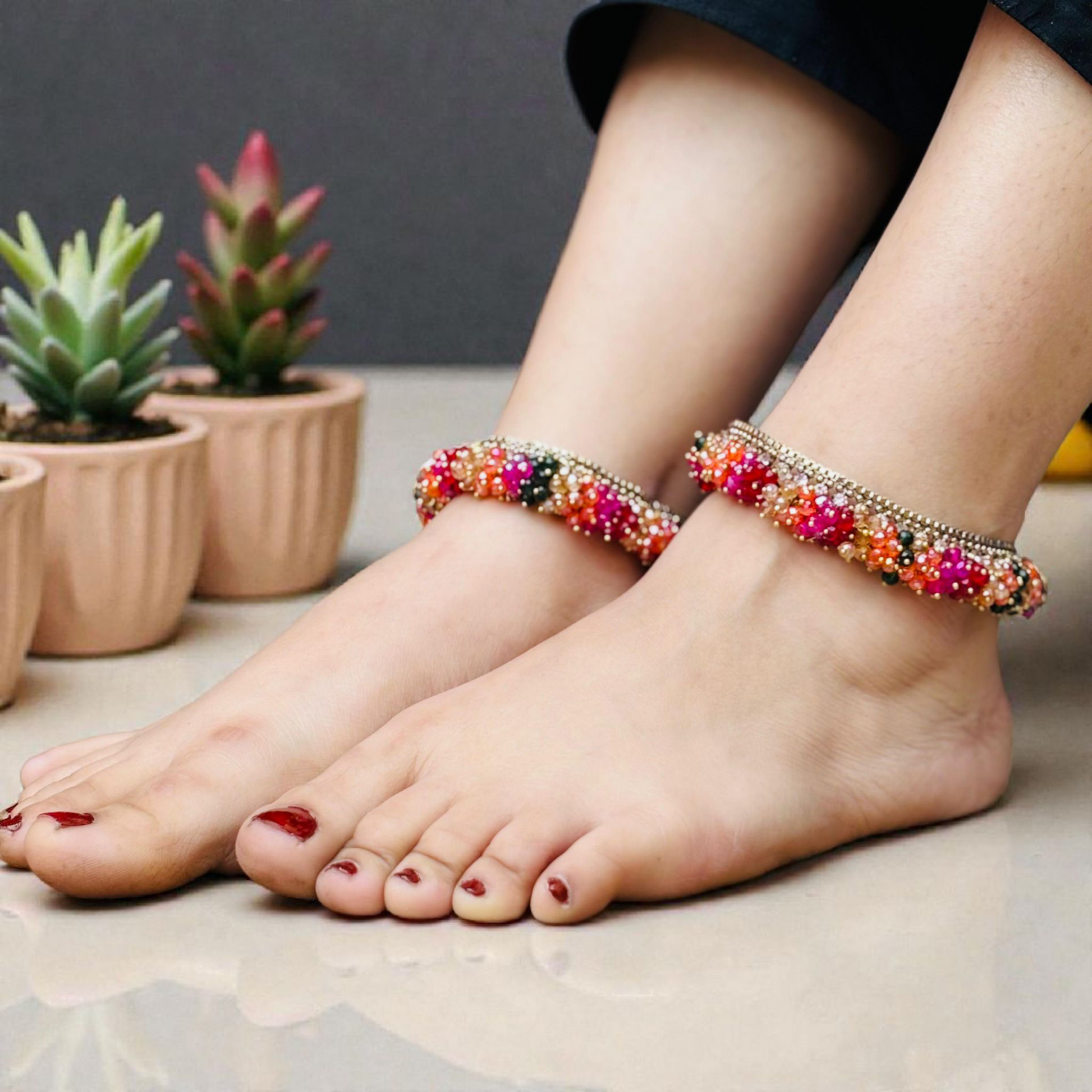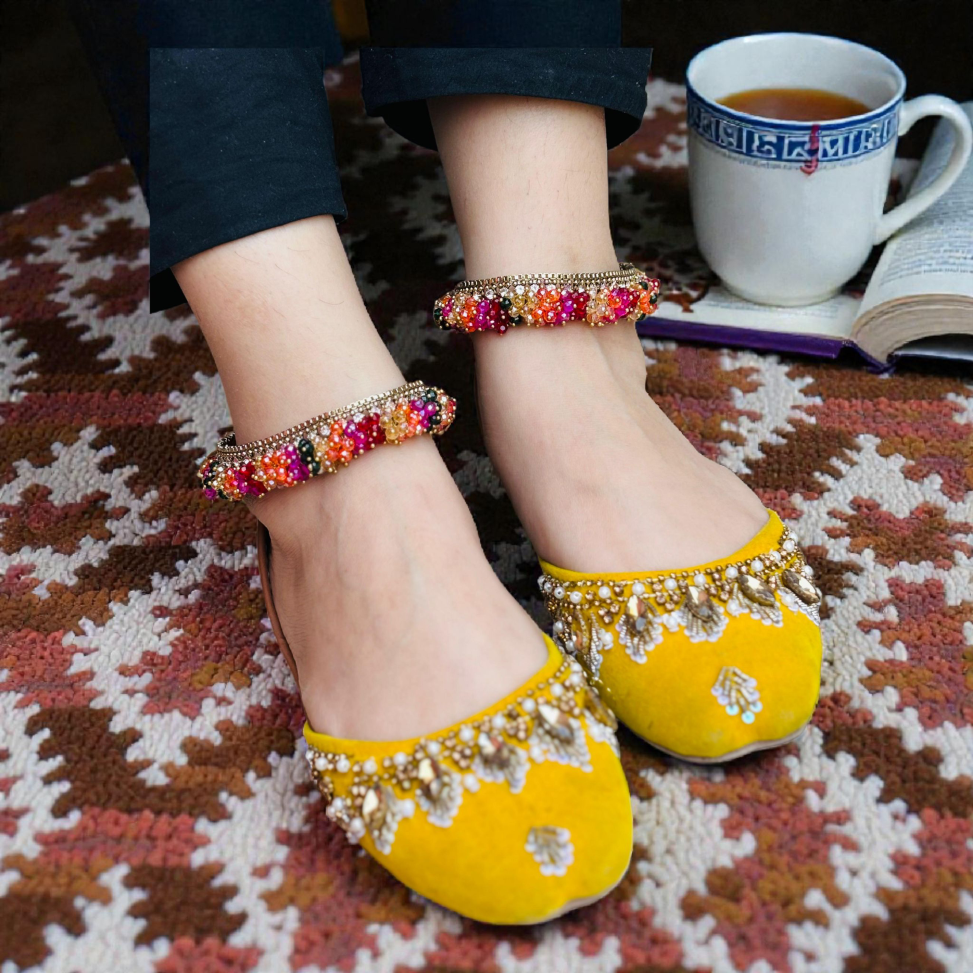 Pazaib pairs represent a timeless addition to traditional Pakistani attire, crafted with meticulous attention to detail. These ornamental ankle bracelets combine cultural heritage with elegant design, featuring intricate patterns and quality craftsmanship. Perfect for weddings, festivals, and special occasions, pazaib pairs enhance the grace of traditional dress while adding a touch of authentic charm. Each pair is designed to complement both classic and contemporary styling, making them an essential accessory for those who appreciate traditional jewelry. Ideal for gifting or personal collection.