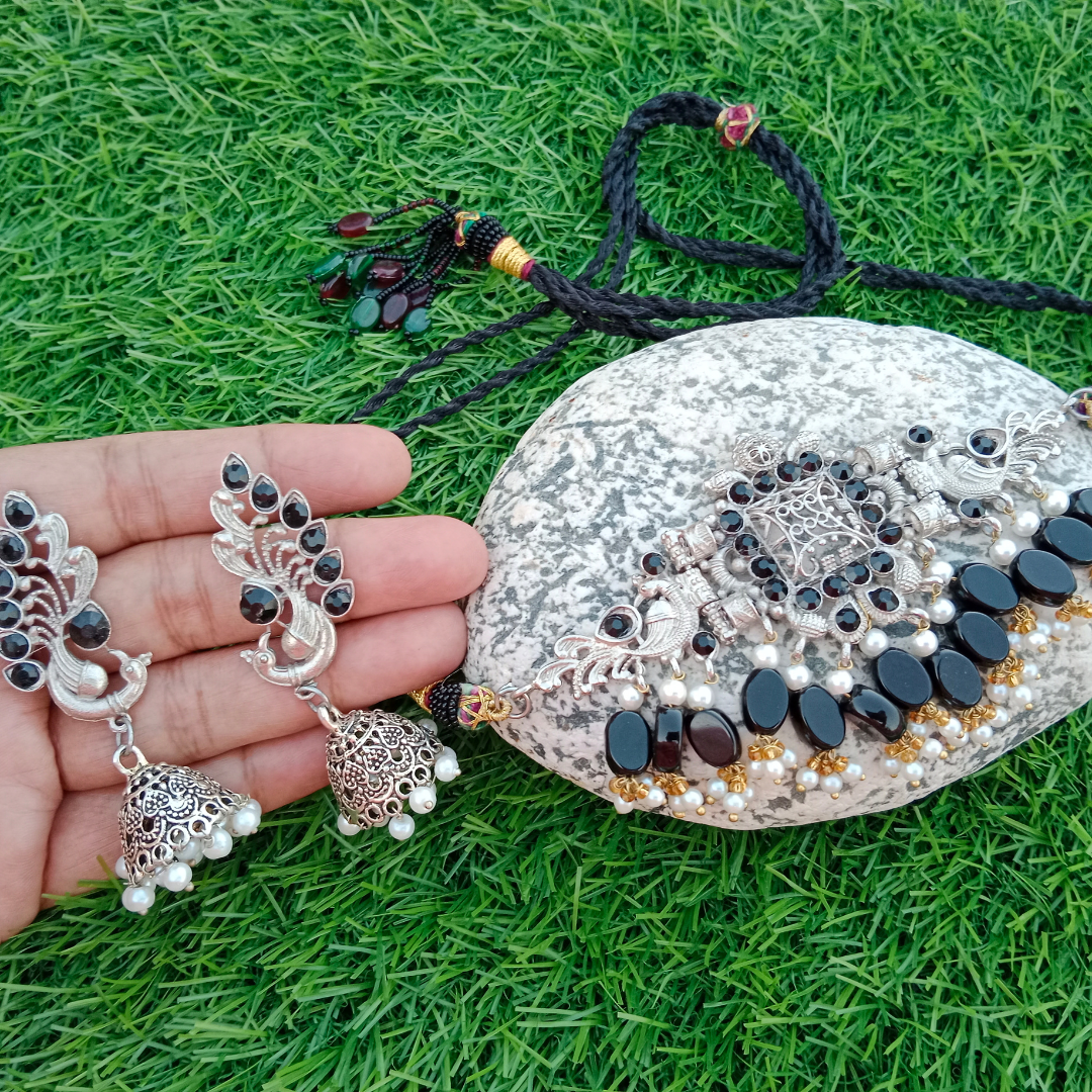 Elevate your jewelry collection with this exquisite Peacock Choker and Earrings set, a masterpiece of traditional craftsmanship. The choker features intricate peacock motifs adorned with vibrant gemstones and detailed metalwork, creating a striking focal point for any occasion. Complemented by matching earrings, this coordinated set delivers sophisticated elegance with authentic artisanal appeal. Perfect for weddings, celebrations, or special events, the set combines timeless design with contemporary styling. Each piece showcases meticulous attention to detail, ensuring both comfort and lasting beauty. A versatile investment that transitions seamlessly from formal gatherings to festive celebrations.