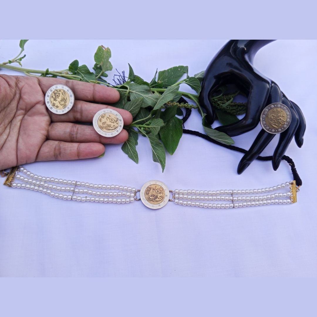 Elevate your jewelry collection with this exquisite two-tone peacock chokar set, featuring intricately designed studs and an adjustable ring. The harmonious blend of tones highlights the peacock motif, offering a sophisticated touch to any outfit. The adjustable ring ensures a perfect fit, combining style with comfort for versatile wear. Ideal for those who appreciate detailed craftsmanship and timeless elegance.